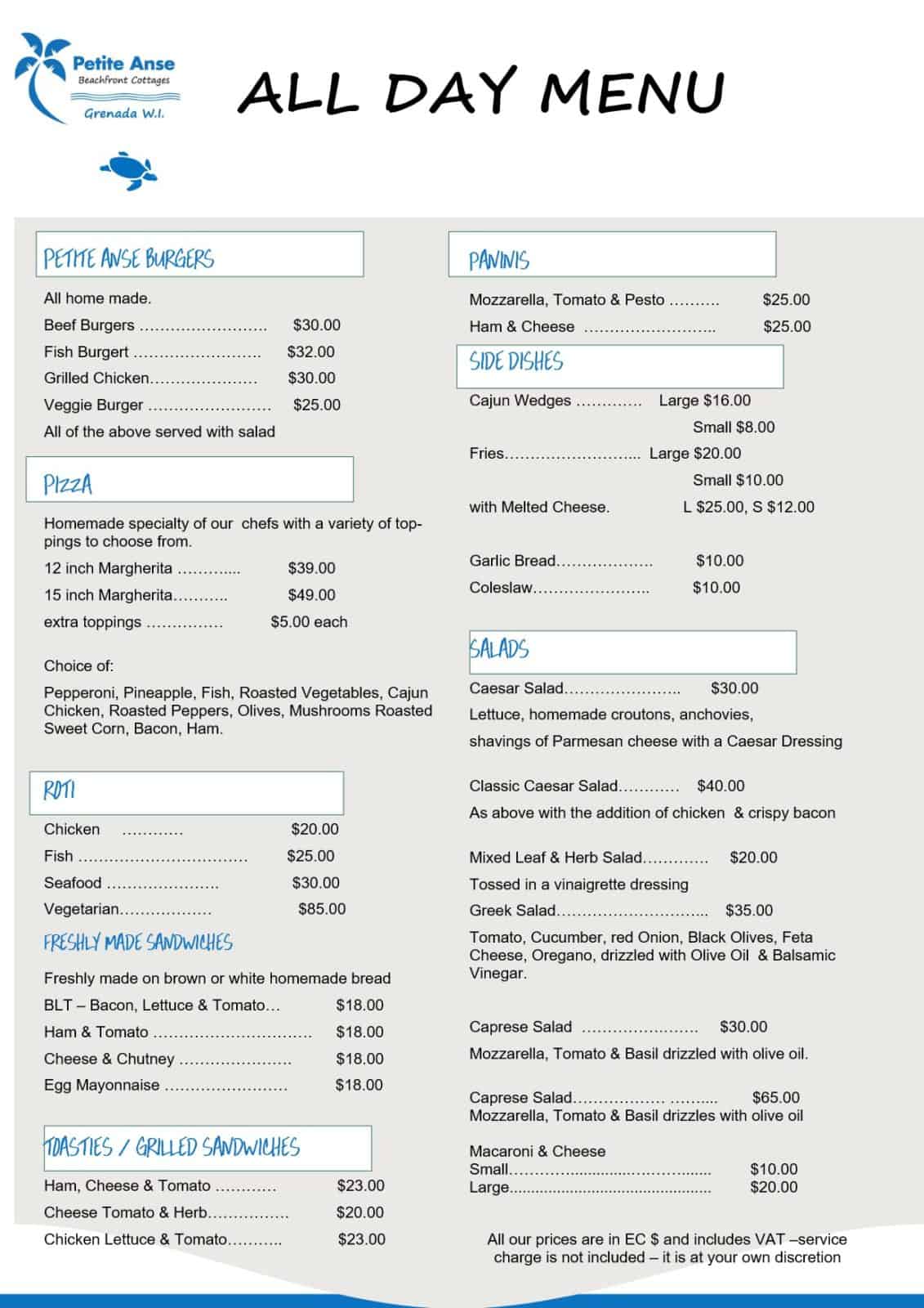 all day menu - Petite Anse Hotel