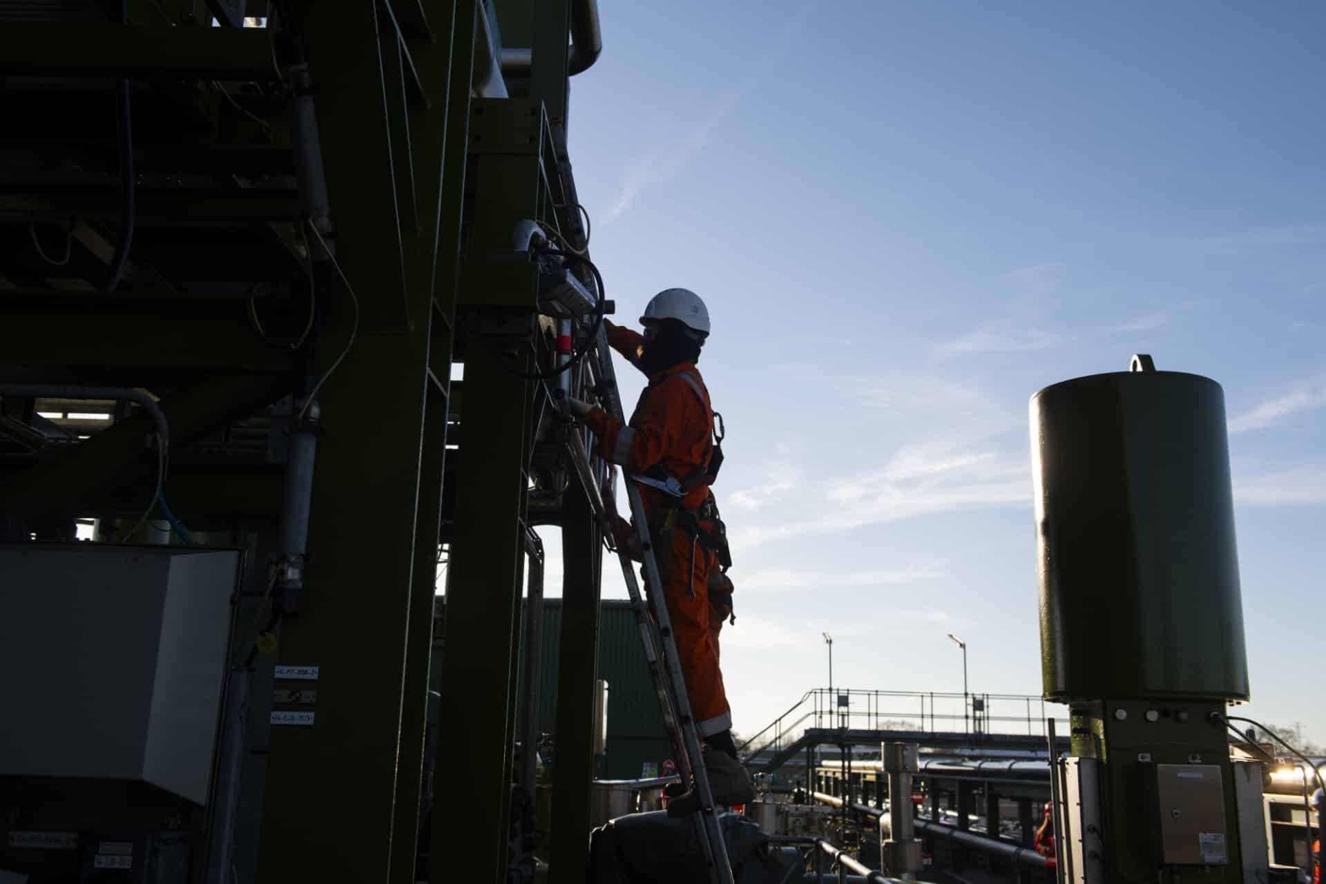 Engineer working in PPE up ladder | ENGIE UK